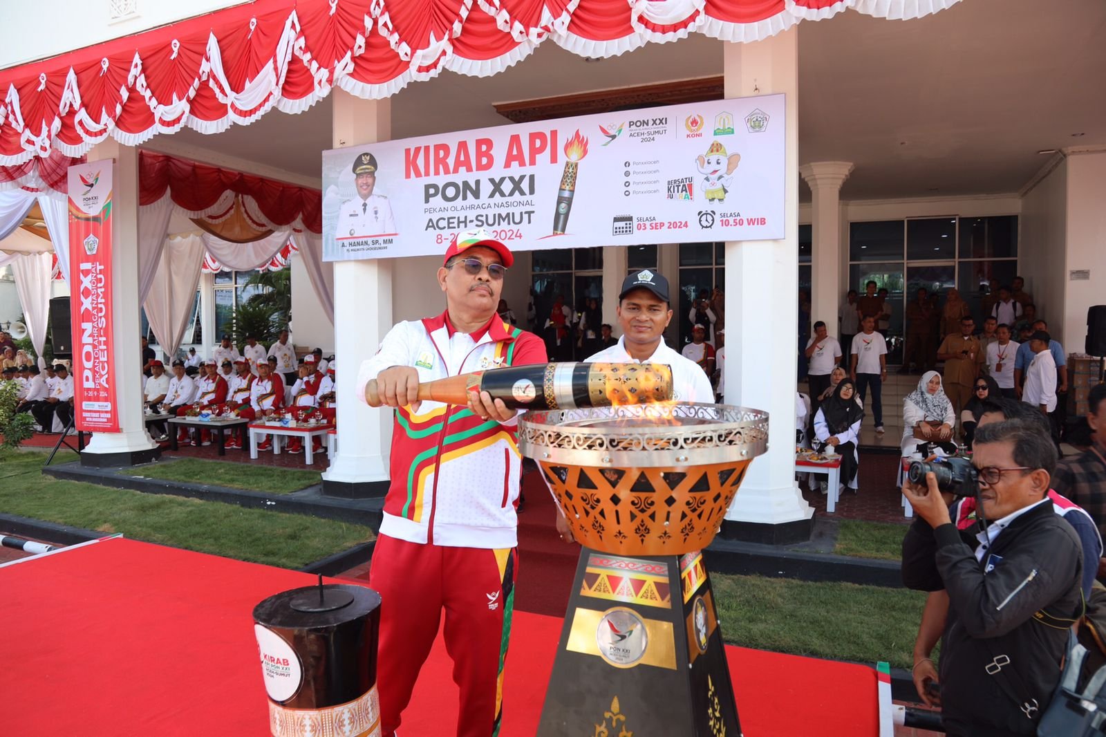 Kirab Api Pekan Olahraga Nasional (PON) XXI Aceh-Sumut 2024 resmi memasuki Kota Lhokseumawe pada Selasa, (03/09). Setelah prosesi serah terima simbolis dengan Kabupaten Aceh Utara di perbatasan kedua daerah, kirab api PON XXI siap melanjutkan perjalanannya.