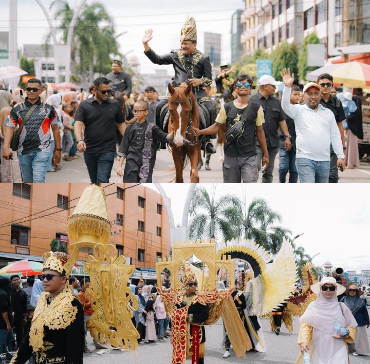 Bupati Mukhlis memimpin langsung jalannya pawai budaya tersebut yang disambut meriah oleh ribuan warga yang bersorak dan momen langka itu langsung difoto menggunakan ponsel mereka mengabadikan lewat tiktok IG dan facebook