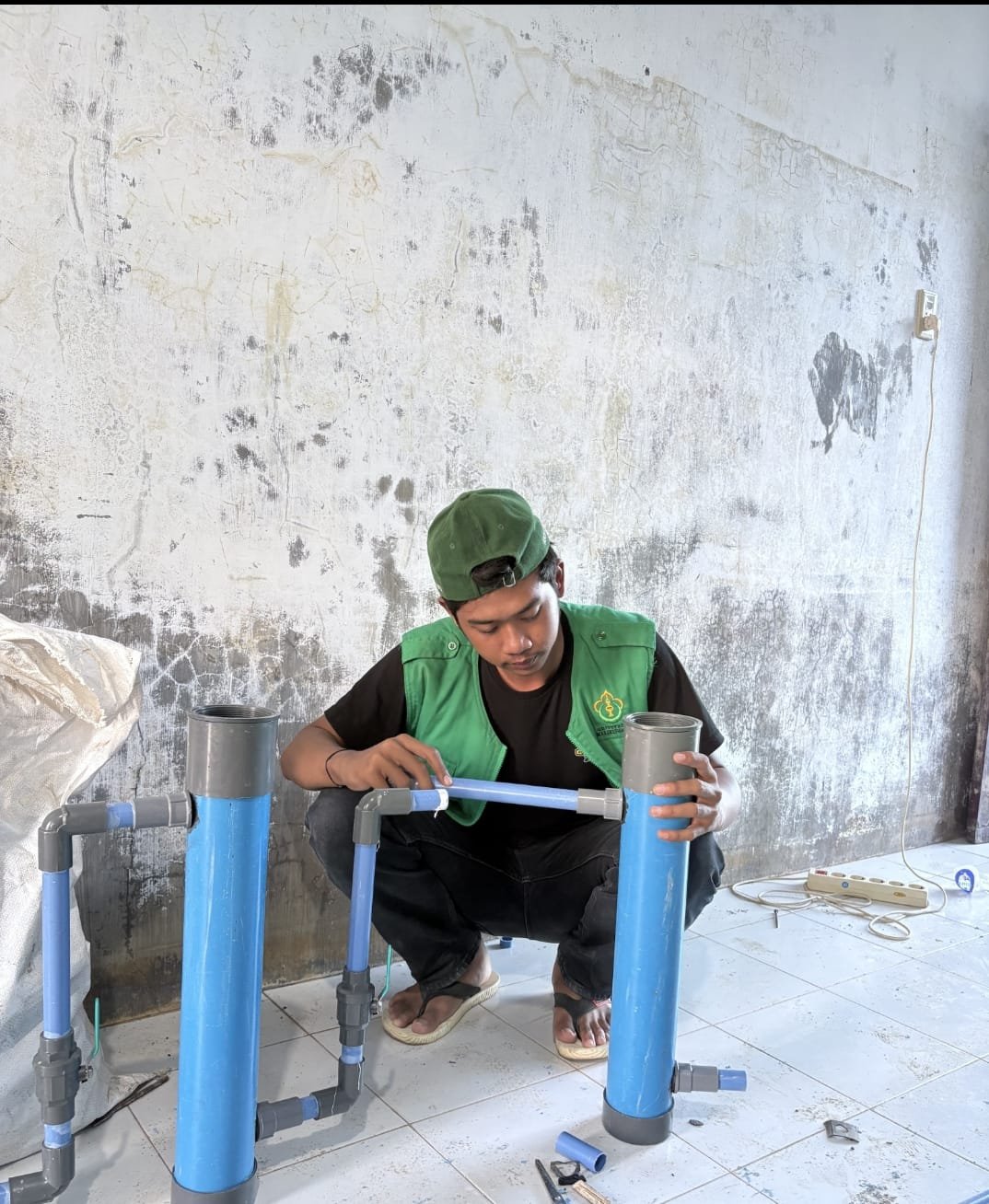 Penanggung Jawab Program Filtrasi Air, Muhammad Ijlal, menjelaskan bahwa pemilihan material dilakukan berdasarkan efektivitasnya dalam menyaring partikel kotoran dan meningkatkan kualitas air.
