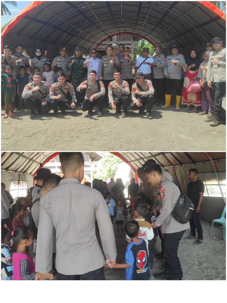 Selain itu, disalurkan bantuan sosial berupa sembako dan beras kepada warga dewasa guna membantu meringankan kebutuhan sehari-hari selama masa pemulihan. Dalam kegiatan ini turut diberikan layanan pengobatan gratis oleh dokter dari Klinik Polres, sebagai upaya memastikan kondisi kesehatan para pengungsi tetap terpantau dan tertangani dengan baik.