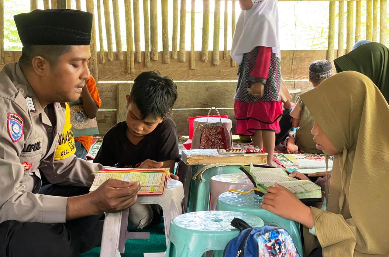 Sosok anggota Polri yang satu ini patut diacungi jempol, Bhabinkamtibmas Polsek Simpang Jernih, Polres Aceh Timur, Polda Aceh, Bripka Saifullah juga aktif menjadi guru ngaji bagi anak-anak di Desa Simpang Jernih.