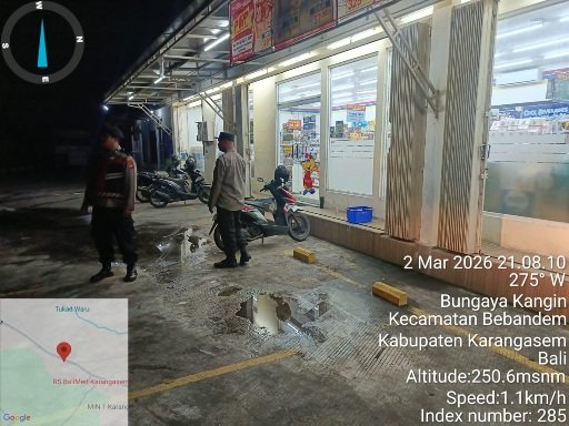 Guna mengantisipasi gangguan Keamanan dan Ketertiban Masyarakat (Kamtibmas) serta dampak cuaca ekstrem, Polsek Bebandem di bawah pimpinan Kapolsek AKP I Gusti Ngurah Bagus Suastawan, S.H., M.H., intensifkan kegiatan Blue Light Patrol, pada Senin malam (2/3/2026).