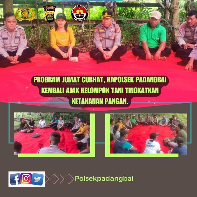 Dalam upaya meningkatkan ketahanan pangan di wilayahnya, Kapolsek Padangbai kembali menggelar kegiatan Jum’at Curhat bersama kelompok tani di Dusun Mimba, Desa Padangbai, pada Jum’at, 14/2/2025.