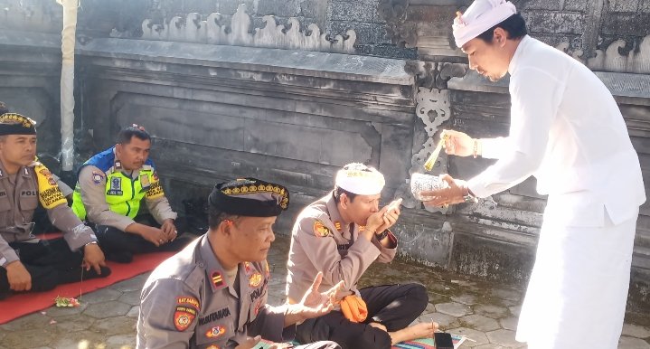 Memohon Anugrah dan Keselamatan, Anggota Polsek Kubu Polres Karangasem Giat Sembahyang Bersama