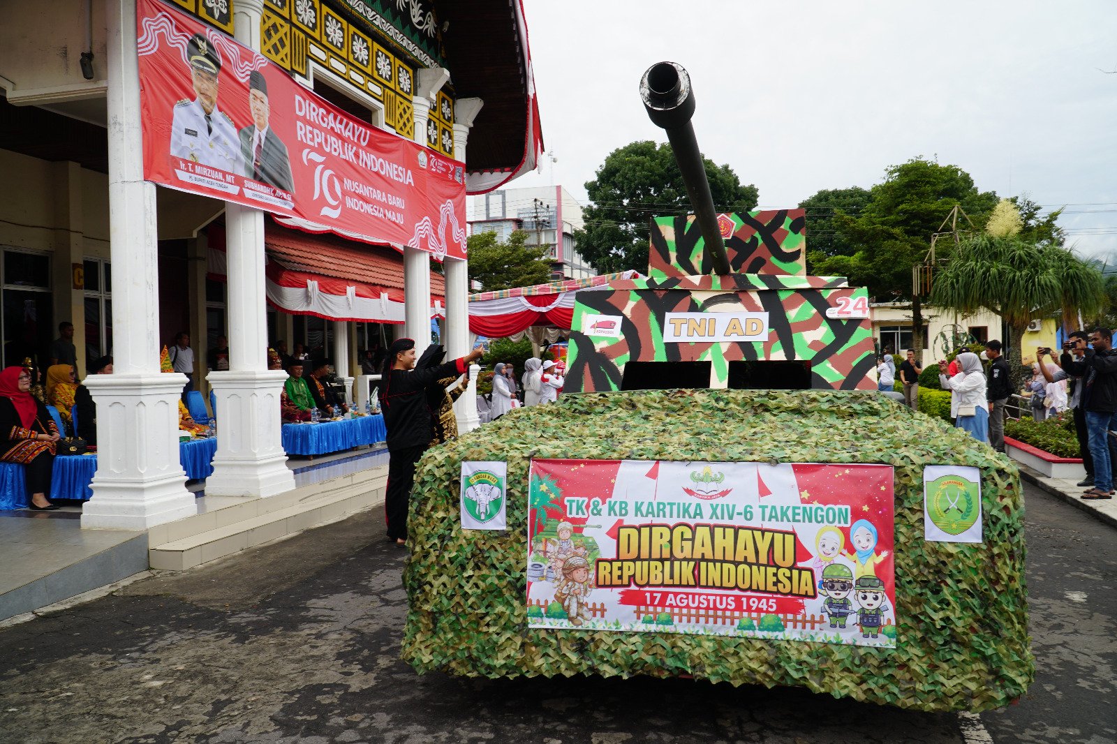 Memeriahkan pawai karnaval budaya dalam rangka memperingati Hut ke -79 Kemerdekaan Repulik Indonesia dengan tema ” Nusantara baru indonesia maju”, berlangsung di lapangan Sekdakab Jln.Yos Sudarso Kp.Kuteni Reje Kec.Lut Tawar Kab. Aceh Tengah. Saptu (10/08/24)