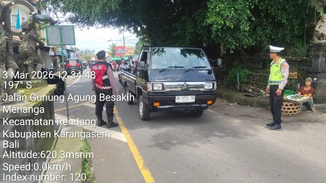 Polsek Rendang dipimpin Pawas AKP I Wayan Suberata,SH bersama anggota melaksanakan patroli ke sejumlah titik keramaian yang berpotensi menjadi lokasi aksi premanisme dan cegah gangguan Kamtibmas, selasa (3/3/2026).