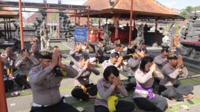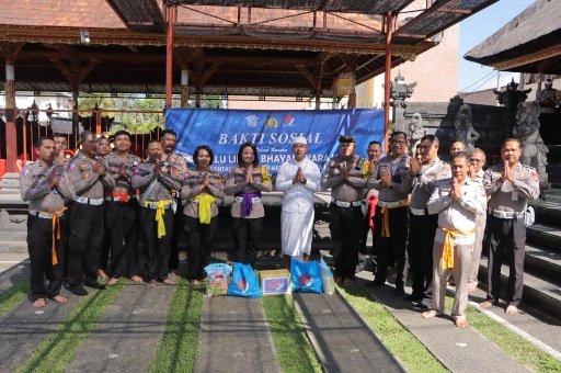 Seijin Kapolres Bangli melalui Kasat Lantas Akp Made Arie Tara Kumalasari bahwa Personil Satuan Lalu lintas Polres Bangli melaksanakan kegiatan Pembinaan rohani berupa persembahyangan bersama di Pura Polres Bangli yang diikuti oleh personel dan ASN Sat lantas Polres Bangli kemudian dilanjutkan dengan kegiatan bakti sosial dengan giat penyerahan sembako kepada Pemangku Polres Bangli.
