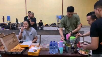 Menariknya, setelah buka puasa, kegiatan dilanjutkan dengan Nonton Bareng laga kualifikasi Piala Dunia antara Indonesia melawan Bahrain. Suasana penuh semangat kebersamaan terasa kuat di tengah jajaran personel yang tetap siaga menjalankan tugas pengamanan.