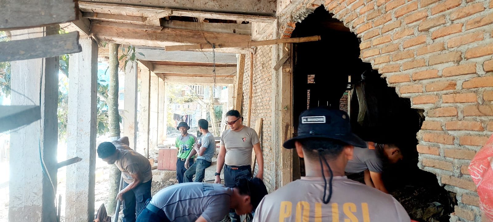 Sebanyak 20 personel gabungan dari Polsubsektor Rusip Antara dan BKO Brimob Polda Aceh diterjunkan untuk membantu proses pembersihan. Dengan menggunakan peralatan manual, para personel bahu-membahu mengangkat tanah dan kayu yang mengendap di bagian belakang rumah.