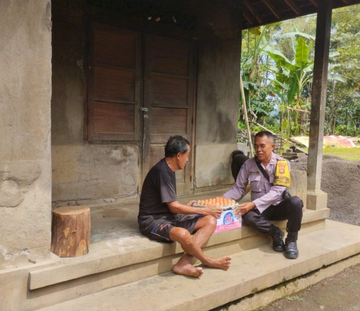 Minggu Kasih Bhabinkamtibmas Desa Sangkan Gunung Berikan Bantuan Sembako kepada Masyarakat Kurang Mampu