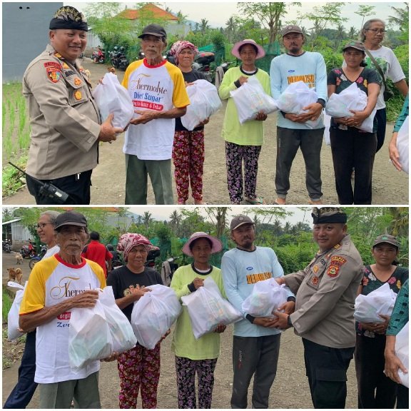 Dalam kesempatan tersebut kapolsek bebandem memberikan bingkisan sebagai tali kasih berupa paket sembako sebanyak 5 paket sembako, sehingga dapat meringankan beban hidup warga yang berhak menerimanya.