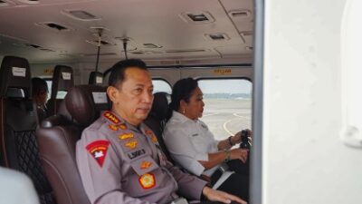 Kapolri beserta Ketua Komisi IV DPR RI, Menko Pangan, Kepala Badan Pangan Nasional, dan Dirut Bulog terpantau tiba di Mahmud Badaruddin II dari Palembang dilanjutkan menaiki helikopter Polri menuju Kab. OKU Timur, Prov. Sumsel pada Sabtu, 27 September 2025.