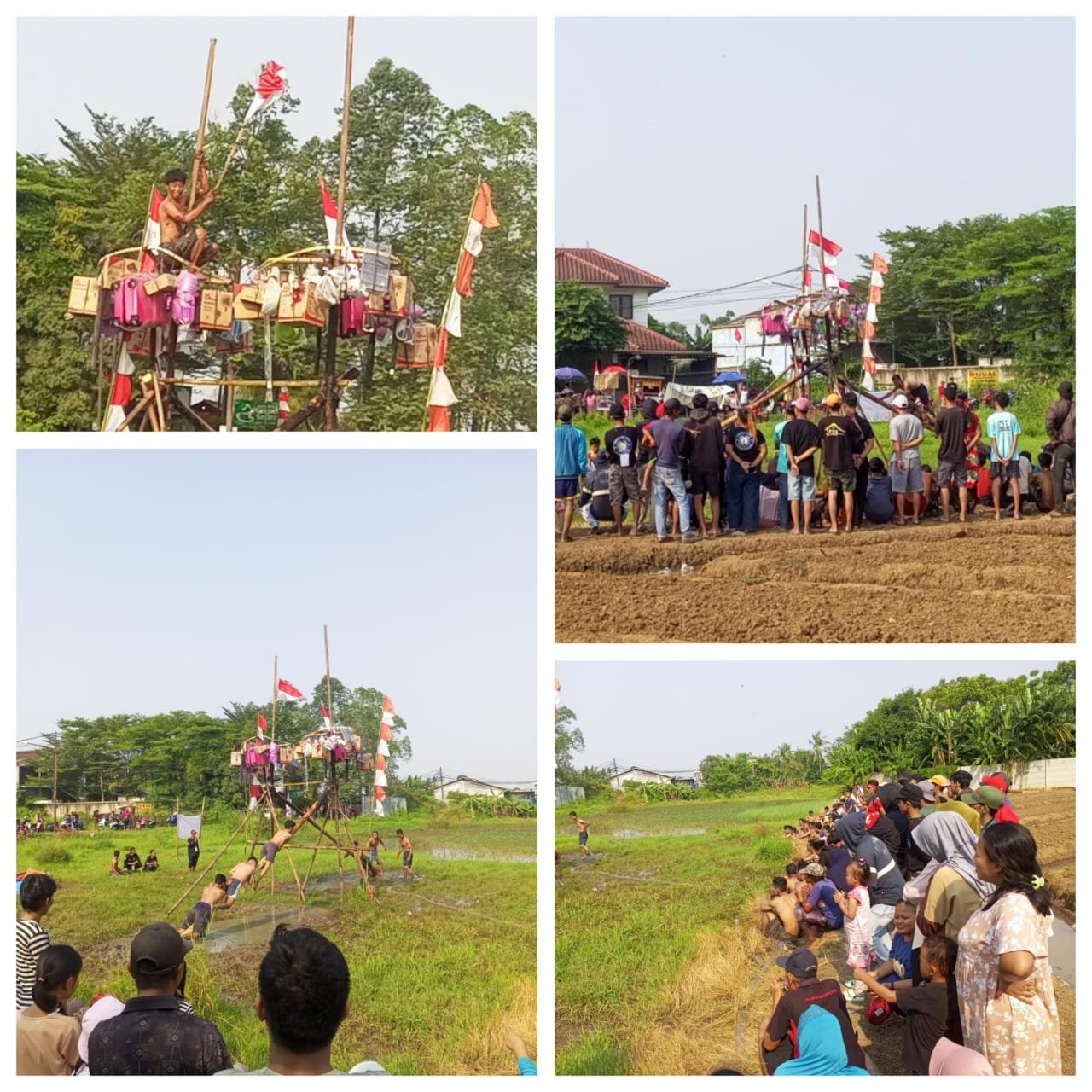Panjat Pinang Di Tengah Bekas Sawah Meriahkan HUT Kemerdekaan Warga Dusun 04 Lebak Wangi