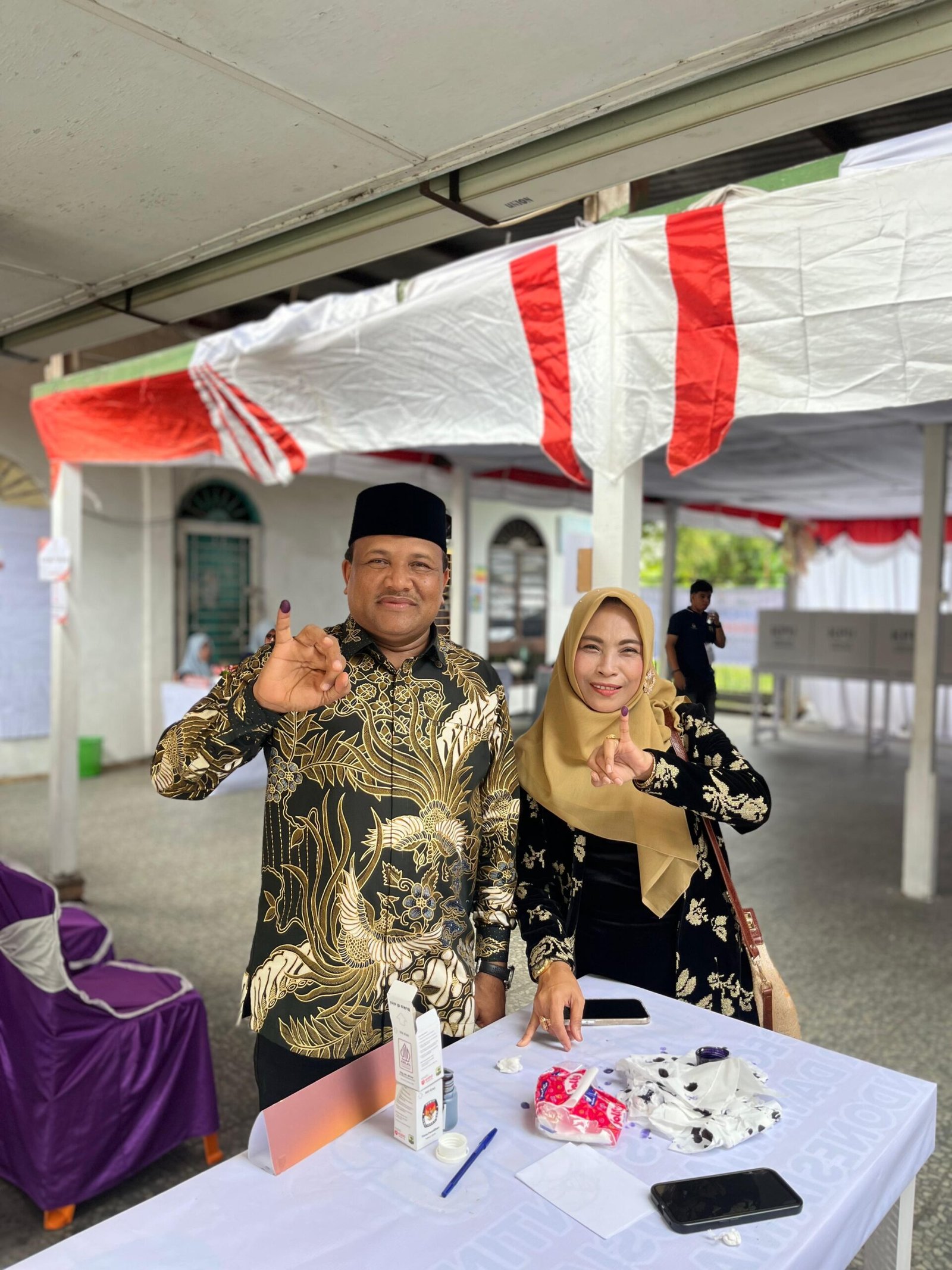 H.Mukhlis ST Bersama Isteri Hj.Sadriah serta Ir.H.Razuardi MT dan isteri mencoblos Di TPS 01 halaman Meunasah Pulo Ara