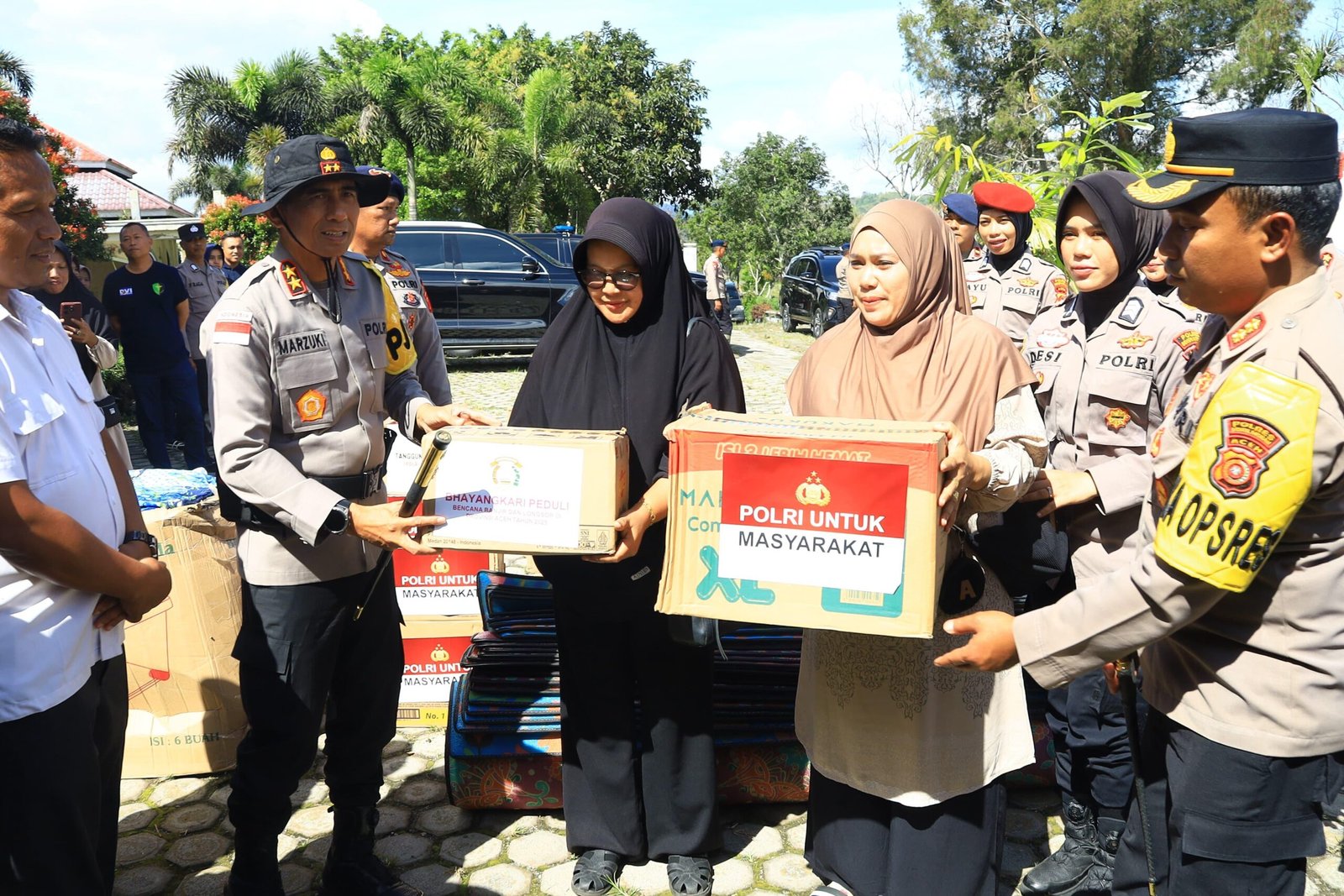 Selanjutnya, pada Rabu (31/12/2025), Kapolres Bener Meriah AKBP Aris Cai Dwi Susanto, S.I.K., M.I.K., mendampingi Kapolda Aceh Irjen Pol. Drs. Marzuki Ali Basyah, M.M., menyalurkan bantuan kemanusiaan kepada warga terdampak yang mengungsi. Penyaluran bantuan tersebut dilaksanakan di lokasi pengungsian yang bertempat di Kampus Universitas Syiah Kuala, Desa Mekar Ayu, Kecamatan Timang Gajah, Kabupaten Bener Meriah.