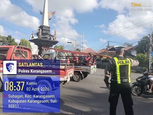 Dalam upaya memastikan dan menjaga dan menciptakan kelancaran arus lalu lintas di seputaran Ktl 2 simpang tiga Kodim personil satuan Lalu Lintas Polres Karangasem melaksanakan pemantauan, pengaturan dan penjagaan dipos Ktl 2 simpang tiga Kodim. Pada Kamis, 2 April 2026.
