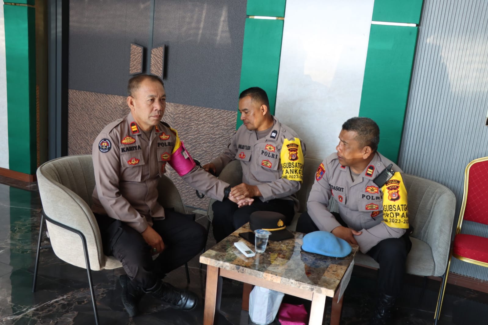 Kapolres Aceh Tengah AKBP Dody Indra Eka Putra, melalui Kasi Humas Iptu Kariya, Pemeriksaan kesehatan ini merupakan salah satu upaya dari Polres Aceh Tengah sebagai layanan bagi anggota Polri yang sedang melaksanakan tugas pengamanan, hal itu kami lakukan agar seluruh petugas tetap dalam kondisi yang prima kesehatannya saat menjalankan tugas,” ujar Kariya.