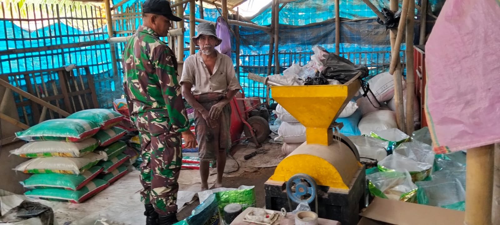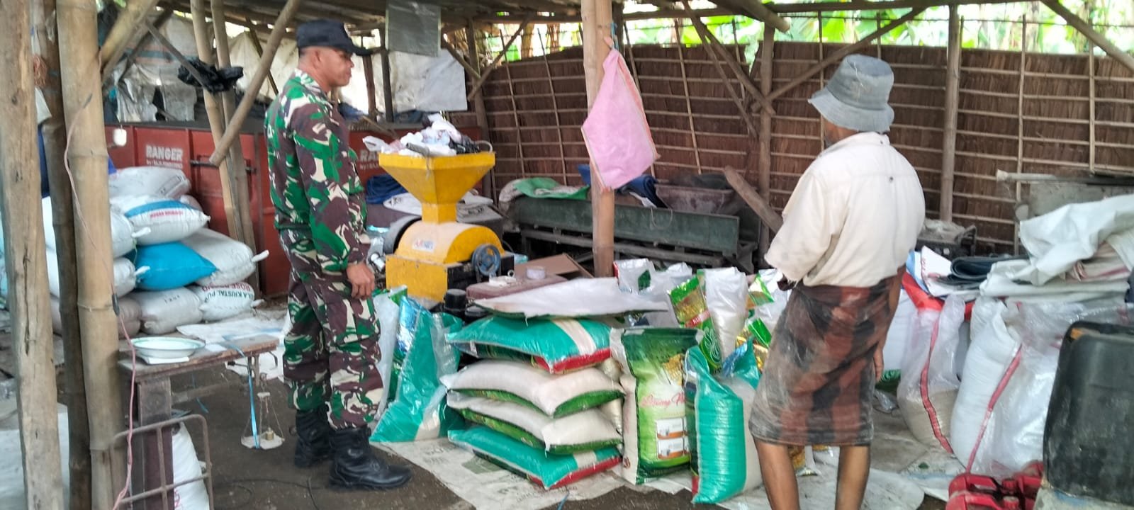 Serda Moh. Sapi’i sebagai Bintara Pembina Desa (Babinsa) Koramil 0829-13/Arosbaya melaksanakan kegiatan pengecekan aktivitas penggilingan padi masyarakat di dusun muncek desa Tengket kecamatan Arosbaya kabupaten Bangkalan pada Rabu (16/4/25).