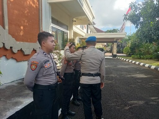 Sipropam Polres Karangasem melaksanakan kegiatan penegakan ketertiban dan disiplin (Gaktibplin) pada saat serah terima tugas jaga piket Fungsi untuk memastikan kepatuhan anggota Polri terhadap aturan dan meningkatkan profesionalisme.