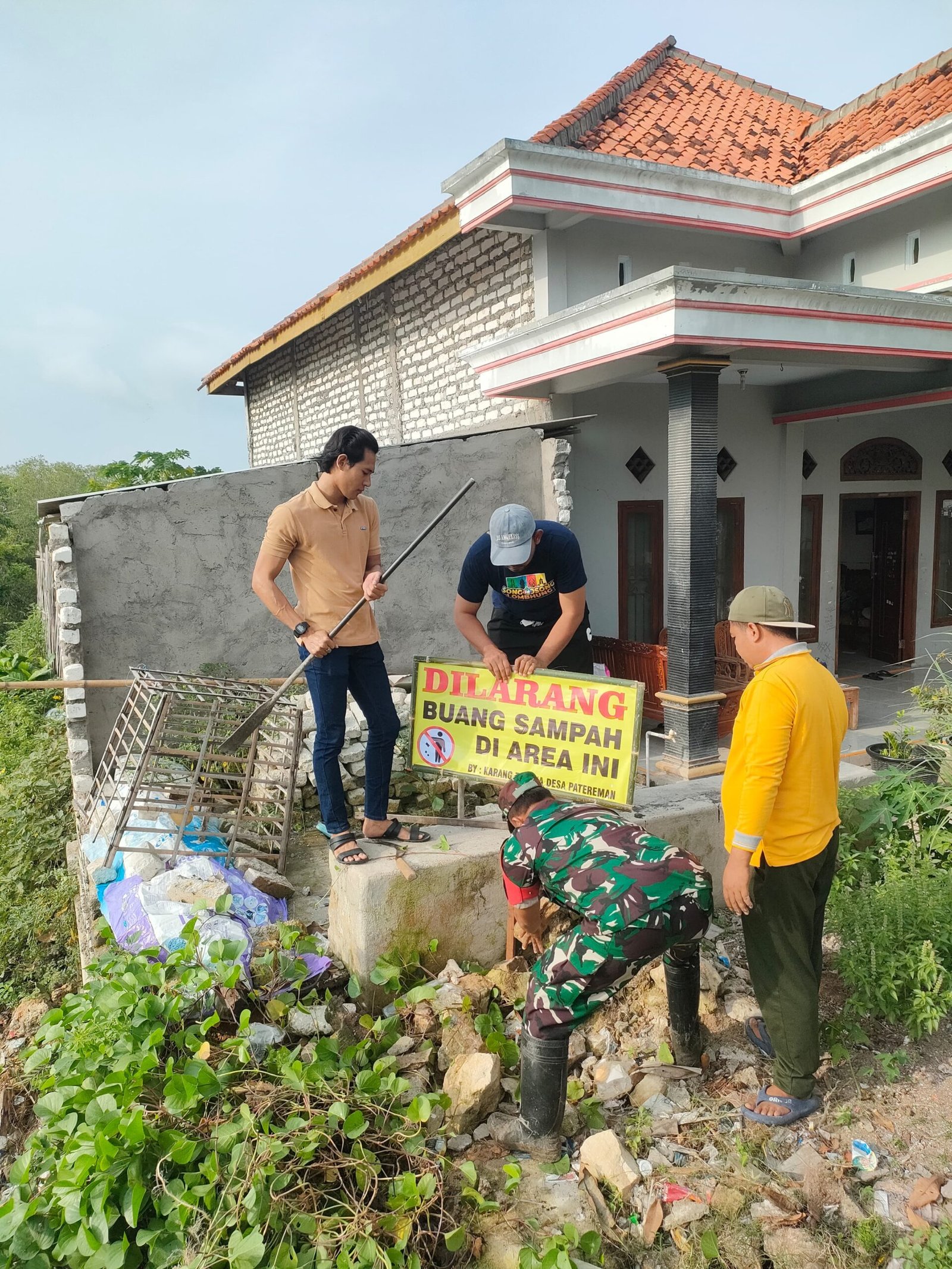 Bangkalan |Jatim | Serka Irfani dan sertu Soleh Babinsa Koramil 0829-12/Modung bersama karang taruna desa Patereman melaksanakan kegiatan pemasangan pamflet serta menghimbau masyarakat tentang aturan dilarang membuang sampah sembarangan di wilayah binaannya. Pada Minggu (2/2/25).
