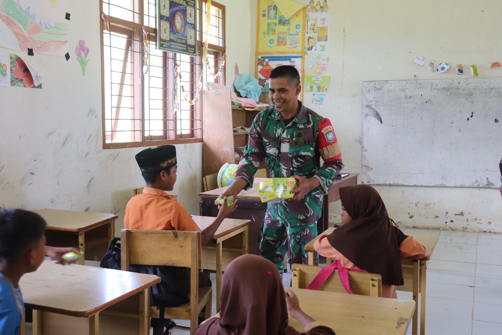 Pada kesempatan itu Babinsa Serda Sukurdi memberikan reward/hadiah berupa snack kepada anak-anak siswa/siswi yang berani tampil kedepan dan menjawab pertanyaan atau soal yang disampaikan, sebagai harapan siswa/siswi jadi termotivasi untuk berani tampil dan menjawab sesuai dengan apa yang sudah diajarkan tentang penjumlahan matematika Dasar Metode Gasing.”