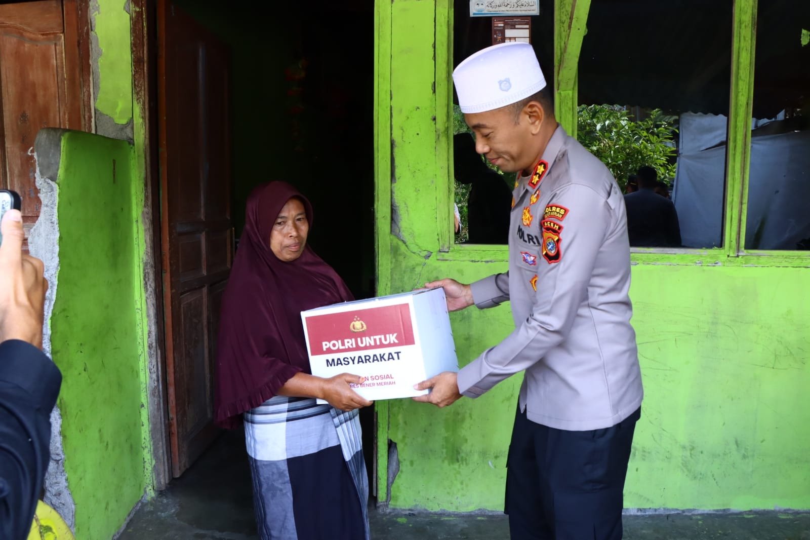 Kegiatan ini berlangsung dengan penuh kebersamaan, di mana Kapolres turut didampingi oleh pejabat utama Polres dan perangkat desa setempat dalam menyerahkan bantuan kepada Ngaliem (52).