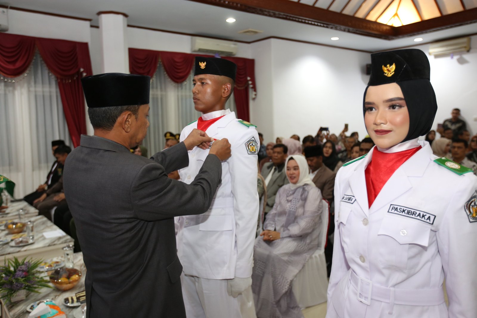 Penjabat (Pj) Wali Kota Lhokseumawe dalam hal ini diwakili oleh Sekretaris Daerah T. Adnan, secara resmi mengukuhkan 35 anggota Pasukan Pengibar Bendera Pusaka (Paskibraka) Kota Lhokseumawe Tahun 2024 yang akan bertugas mengibarkan bendera pada peringatan HUT RI Ke-79. Pengukuhan Anggota Paskibraka berlangsung di Aula Kantor Wali Kota Lhokseumawe, Kamis malam (15/08/2024).