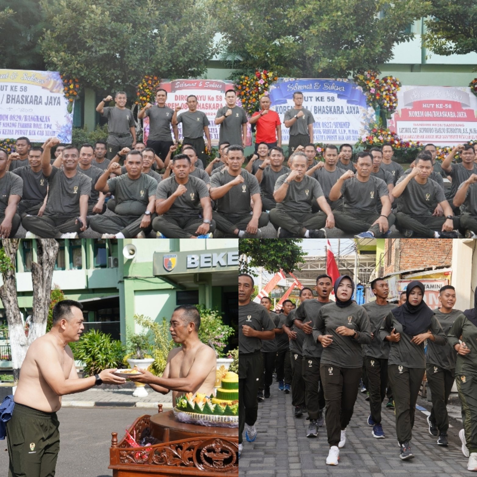 Tak hanya olah raga dan lari 10 K saja, pada kegiatan tersebut juga dilaksanakan pemotongan nasi tumpeng sebagai ungkapann rasa syukur kepadan Tuhan YME di Hari Jadi Ke-58 Korem 084/Bhaskara Jaya tahun 2024 ini.