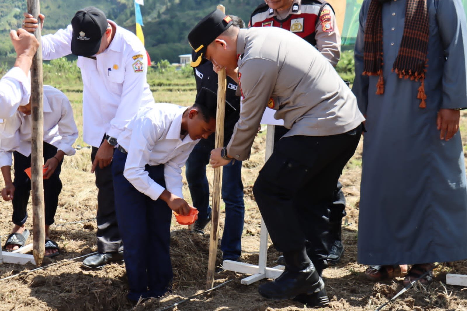 Usai sambutan, kegiatan dilanjutkan dengan penanaman benih jagung secara simbolis oleh Kapolres bersama para tamu undangan. Selanjutnya, proses penanaman akan diteruskan oleh pengurus dan santri pondok pesantren.