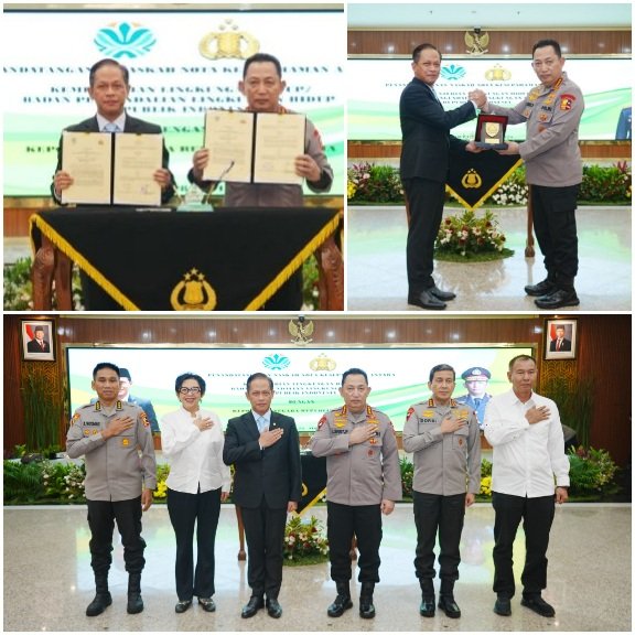Kapolri Jenderal Polisi Listyo Sigit Prabowo dan Menteri Lingkungan Hidup dan Kehutanan (LHK), Hanif Faisol Nurofiq, menandatangani nota kesepahaman atau Memorandum of Understanding (MoU) terkait penanganan kualitas lingkungan hidup. Penandatanganan ini dilakukan di Mabes Polri, Jakarta Selatan, Rabu 28 Mei 2025.