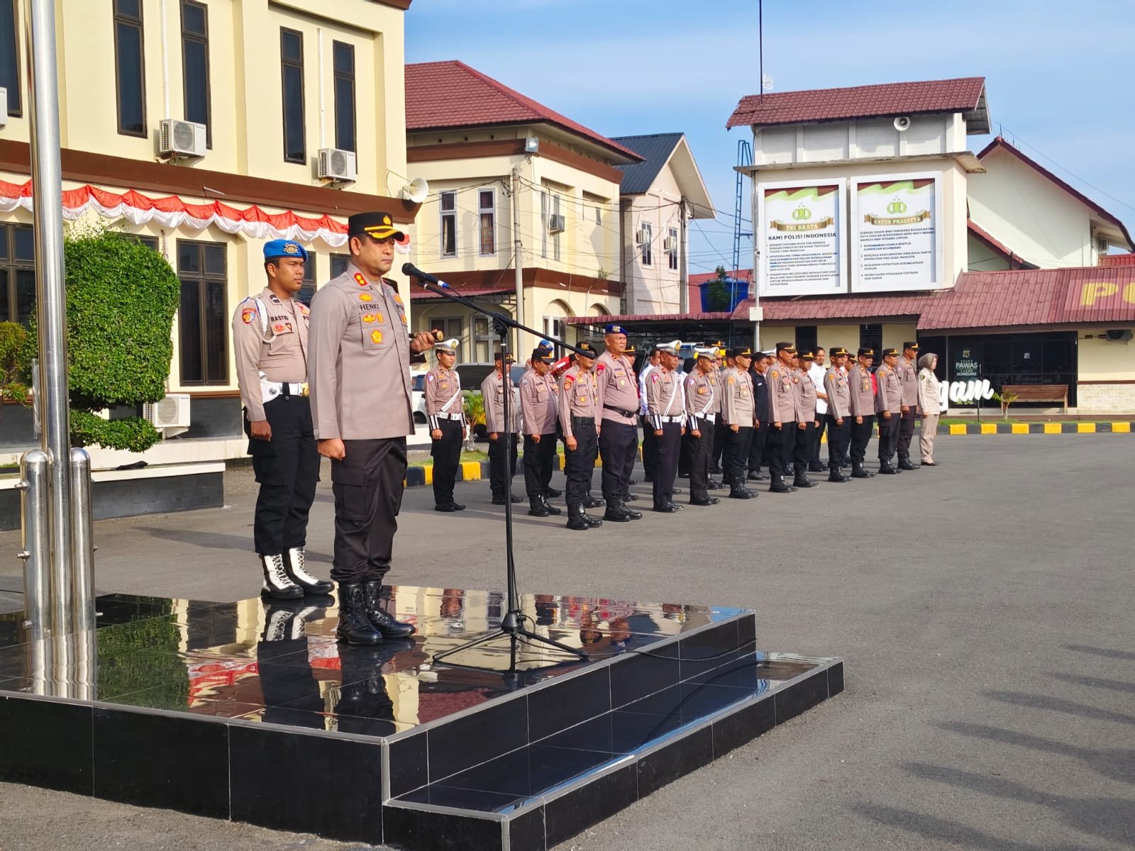 Kapolres memberikan pesan khusus kepada seluruh personel untuk meningkatkan intensitas patroli dan kegiatan sambang guna memastikan situasi kamtibmas tetap kondusif selama tahapan Pilkada berlangsung.