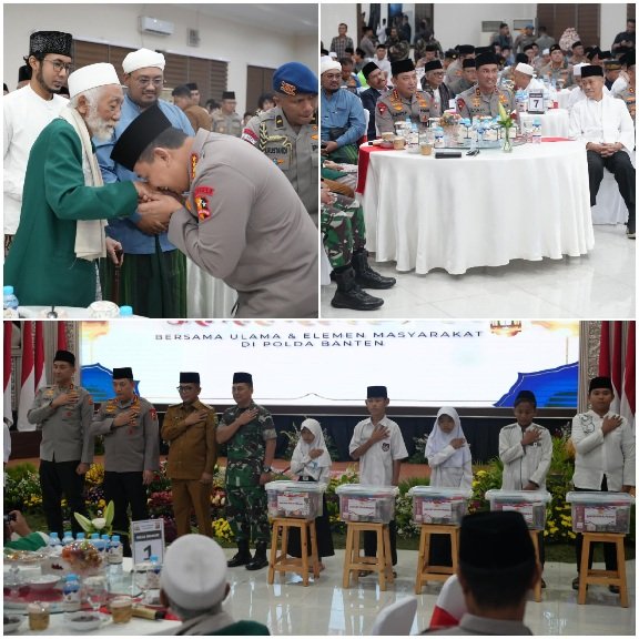 Kapolri Jenderal Pol. Listyo Sigit Prabowo beserta sejumlah pejabat utama Mabes Polri menggelar acara buka puasa bersama para tokoh ulama dan elemen masyarakat Banten. Pada Selasa, (18/3/2025).