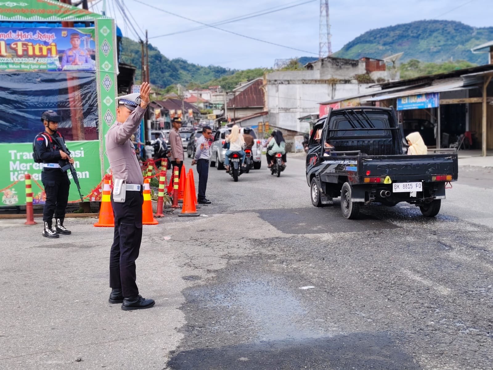 Redelong – Dalam rangka memastikan kelancaran arus mudik menjelang Hari Raya Idulfitri, personel pengamanan Operasi Ketupat Seulawah melaksanakan pengaturan lalu lintas di Jalan Takengon-Bireuen, Kecamatan Wih Pesam, Kabupaten Bener Meriah, pada Selasa (1/4/2025).