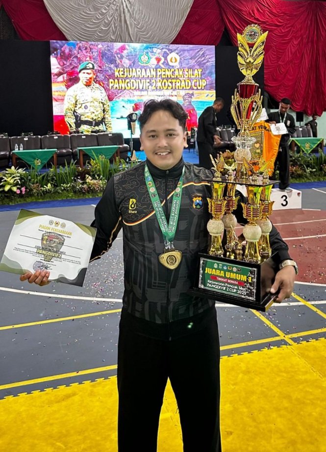 Ia meraih medali emas di Kejuaraan Terbuka Pencak Silat Pangdivif 2 Cup 2025 TNI/Polri dan Umum. Bripda Sholeh Maulana berhasil menorehkan prestasi gemilang dengan meraih medali emas di Kelas G Dewasa Putra pada Kejuaraan Terbuka Pencak Silat Pangdivif 2 Cup 2025 TNI/Polri dan Umum.