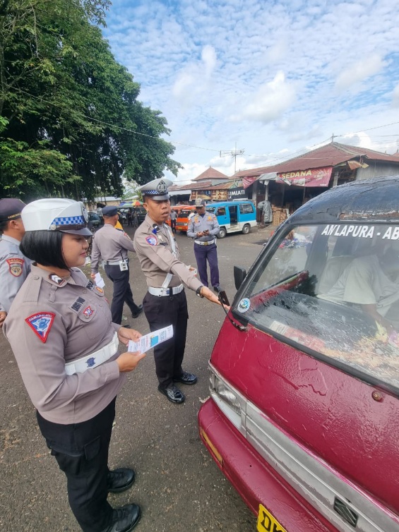 Dalam upaya mewujudkan ketertiban dan kelancaran lalulintas, Personil Dikyasa Lantas Polres Karangasem memberikan bimbingan dan penyuluhan kepada masyarakat yang beraktivitas di Pasar Tradisional, Jalan Kesatrian Amlapura. Pada Rabu, 24 September 2025 , pukul 08.00 Wita,