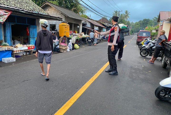 Personil Polsek Abang Laksanakan Kegiatan Gatur Lalin di Pasar Abang