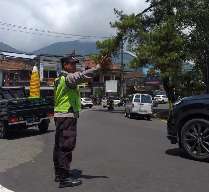Personil Polsek Baturiti Berikan Pelayanan Kamseltibcarlantas Pada Jalur Utama Dari Dan Menuju Obyek Wisata