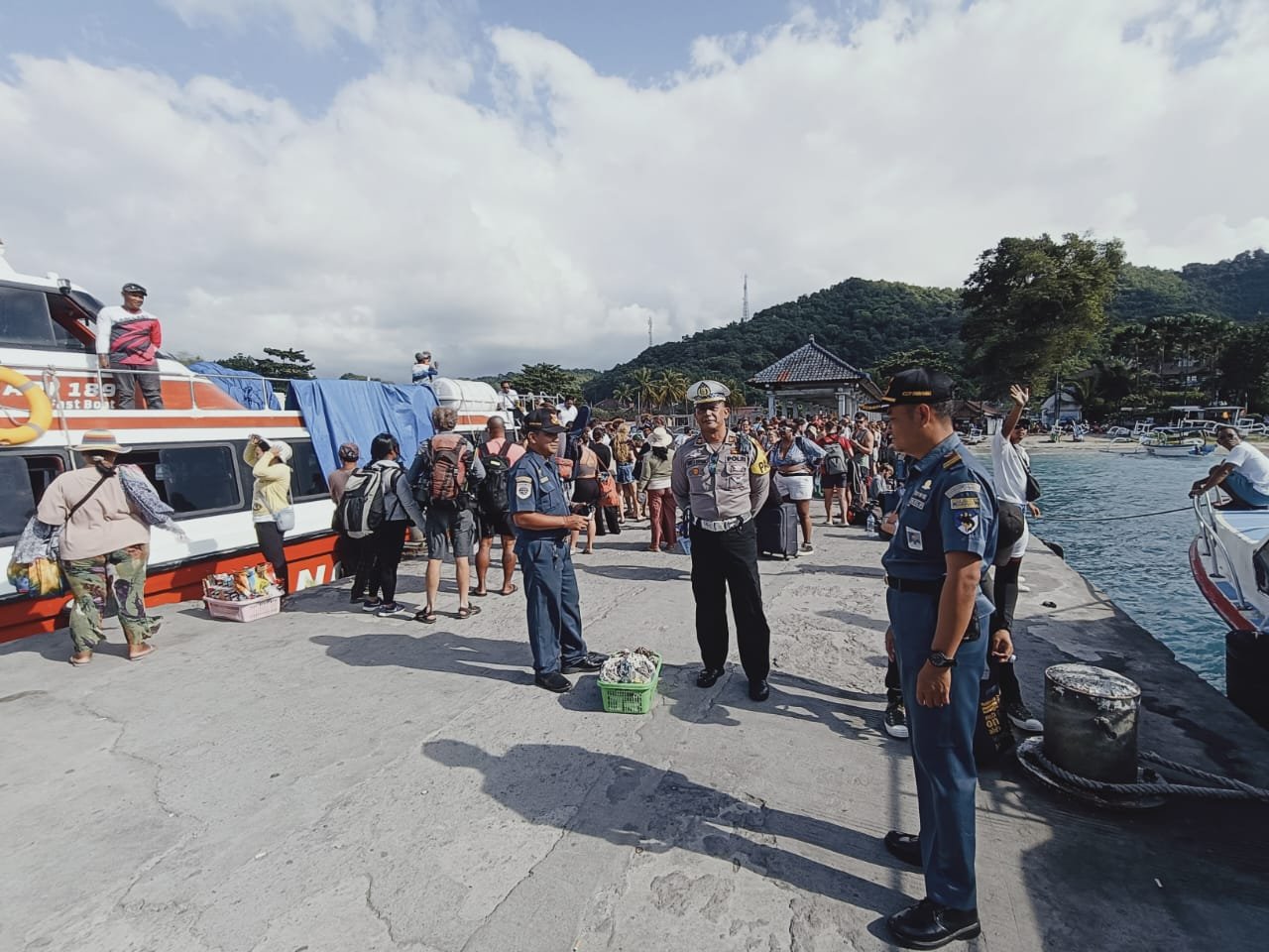 Personil Polsek Padangbai Pantau Pemuatan Fast Boat di Dermaga Pelabuhan Rakyat Padangbai Bersama Instansi Terkait