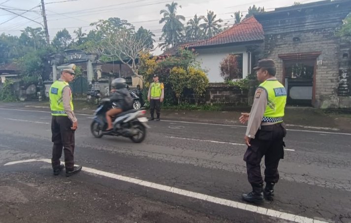 Wujud pelayanan Polri sebagai pelaksanaan tugas-tugas Kepolisian Personil Polsek Rendang Kanit Lantas AKP I Wayan Suberata, bersama anggota melaksanakan Pengamanan pengaturan lalu lintas atensi kegiatan masyarakat dan anak-anak sekolah guna cegah laka lantas serta gangguan kelancaran arus lalu lintas, Senin (29/4/2024).