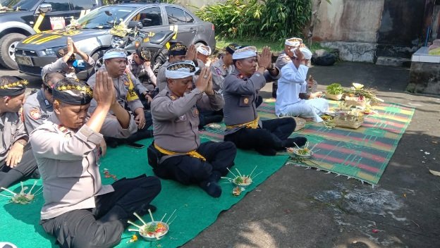 Kegiatan persembahyangan hari raya Tumpek Landep diikuti oleh personil Polsek Rendang dipimpin oleh Kapolsek Rendang Kompol Made Suadnyana, S. Sos bersama anggota Polsek Rendang serta di puput oleh Jero Mangku Bripka I Nyoman Miasa, pada Sabtu, (22/2/2025).