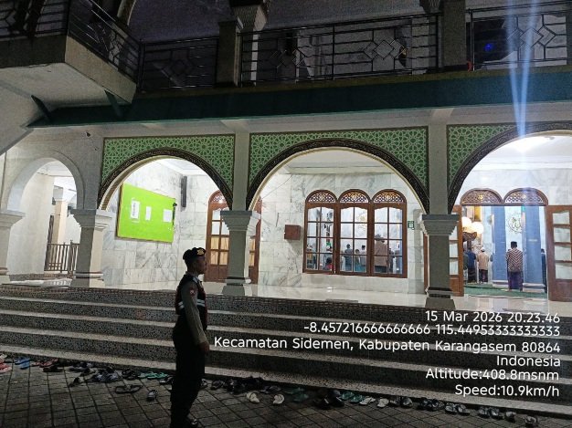Demi menciptakan situasi yang aman dan nyaman pada saat pelaksanaan ibadah sholat tarawih, Polsek Sidemen Polres Karangasem melaksanakan patroli rutin sekaligus melaksanakan pengamanan shalat tarawih di seluruh masjid dalam wilayah hukum Polsek Sidemen Minggu, 15 Maret 2026. Di tempat terpisah Kapolsek Sidemen AKP I Gusti Bagus Suteja,S.IP.,M.H menjelaskan tujuan patroli sekaligus pengamanan ibadah di bulan suci Ramadan, termasuk salah satunya adalah pelaksanaan sholat tarawih.