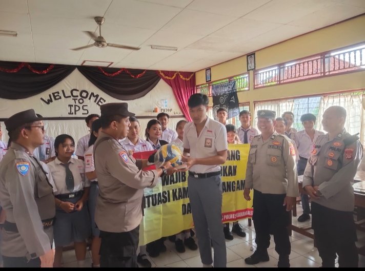 Kemudian Kegiatan dilanjutkan dengan Penyerahan Sarana kontak kepada para siswa SMA PGRI AMLAPURA berupa bola voly, Net voly, buku tulis dan bolpoin yang mungkin bisa bermanfaat bagi siswa siswi si SMA PGRI,” tandas Kanit Bintibsos Sat Binmas Polres Karangasem.
