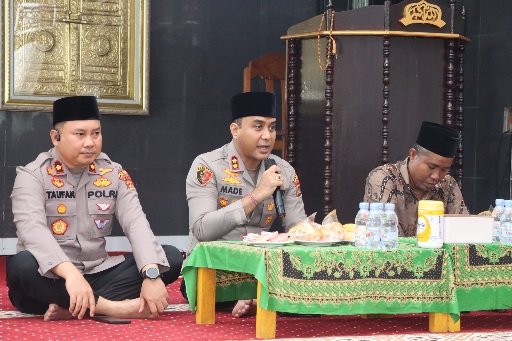 Acara tersebut dihadiri langsung oleh Kapolres Karangasem, AKBP I Made Santika, S.H., S.I.K., M.I.K., didampingi Wakapolres Kompol Taufan Rizaldi, S.I.K., S.H., Pejabat Utama (PJU), Pj. Ketua Bhayangkari Cabang Karangasem, serta personel muslim Polres Karangasem dan masyarakat sekitar.