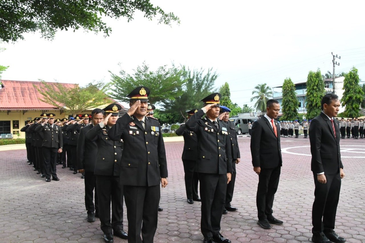 Kepala Kepolisian Resor Aceh Timur, Polda Aceh, AKBP Irwan Kurniadi, S.I.K. memimpin upacara memperingati Hari Pahlawan Nasional di Lapangan Apel Sarja Arya Racana, Senin, (10/11/2025) pagi.