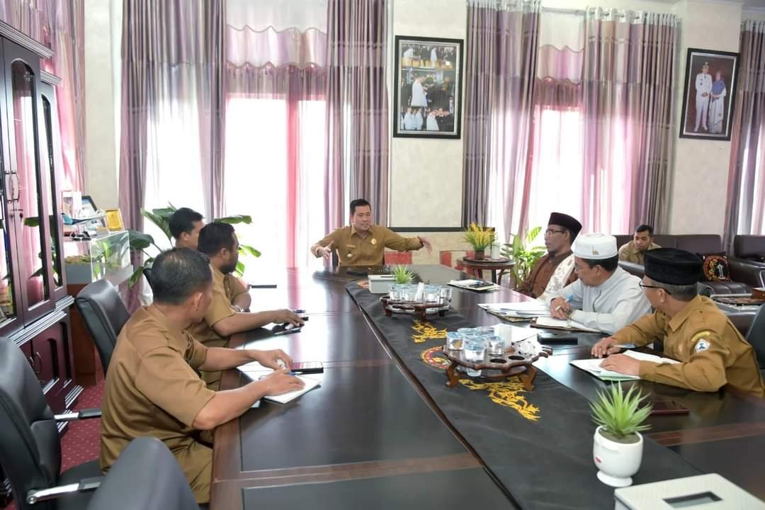 Pj. Bupati Bener Meriah Drs. Haili Yoga, M.Si pimpin pertemuan terkait persiapan Musyawarah Daerah (Musda) MPU Periode 2024-2029 bersama Sekreatait MPU Bener Meriah di ruang kerja Bupati, Senin (25-03-2024).