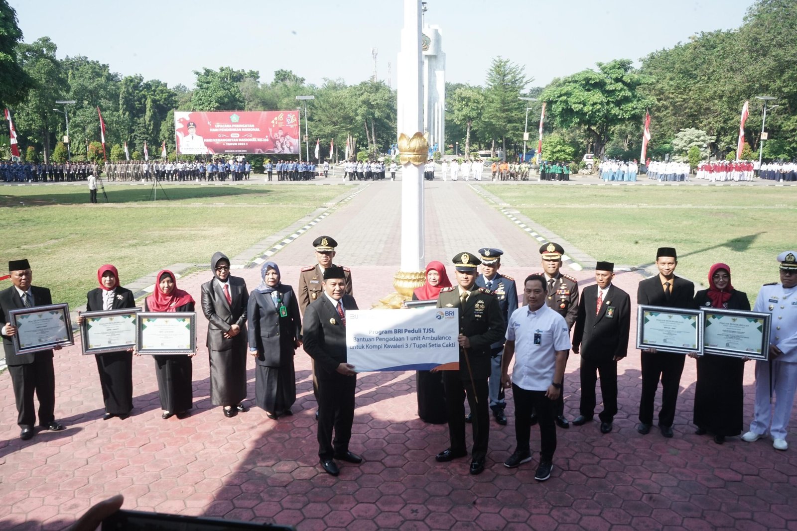 Selain itu juga menyerahkan CSR 1 unit mobil ambulan dari BRI untuk Kikav 3/ Tupai Setia Cakti.(Luqman)