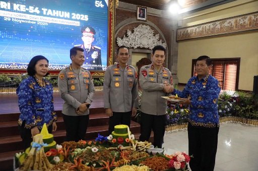 Dalam menyambut Peringatan Hari Ulang Tahun Korps Pegawai Republik Indonesia (KORPRI) ke-54 Tahun 2025, Polda Bali menyelenggarakan syukuran yang dihadiri oleh Kapolda Bali Irjen. Pol. Daniel Adityajaya, S.H., S.I.K., M.Si., Wakapolda Bali Brigjen. Pol. I Komang Sandi Arsana, S.I.K, M.H. beserta pejabat utama (PJU) Polda Bali dan seluruh personel ASN Polda Bali. Bertempat di Gedung Presisi Polda Bali. Pada Selasa, (2/12/2025).