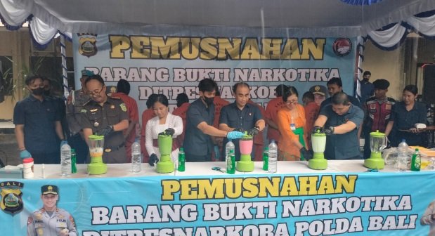 Mewakili Kapolda Bali Dirnarkoba Kombes Pol Radiant S.I.K., M.Hum., pimpin pemusnahan barang bukti narkotika dan obat-obatan terlarang (Narkoba) bernilai Rp. 4.014.020.000,- (empat milyar empat belas juta dua puluh ribu rupiah), di lobi Ditnarkoba. Pada Kamis, (18/12/2025).