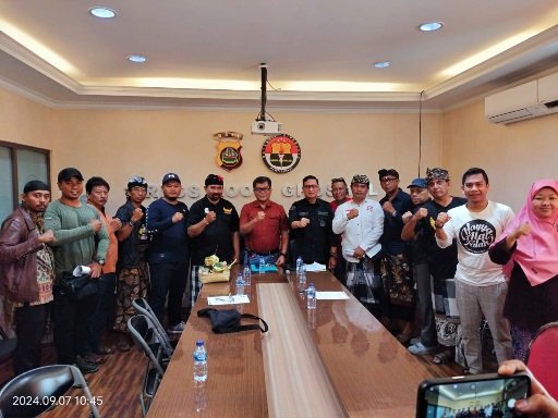 Direskrimsus Kombes Pol Roy H.M. Sihombing S.I.K., dan Kabid Humas Polda Bali Kombes Pol Jansen Avitua Panjaitan S.I.K., M.H., turt hadir Karoops Kombes Pol Soelistijono, S.I.K., M.H., terima perwakilan aksi damai dari aliansi kebhinekaan Bali, di ruang Press Room Bid Himas Polda Bali pada sabtu 7 september 2024.