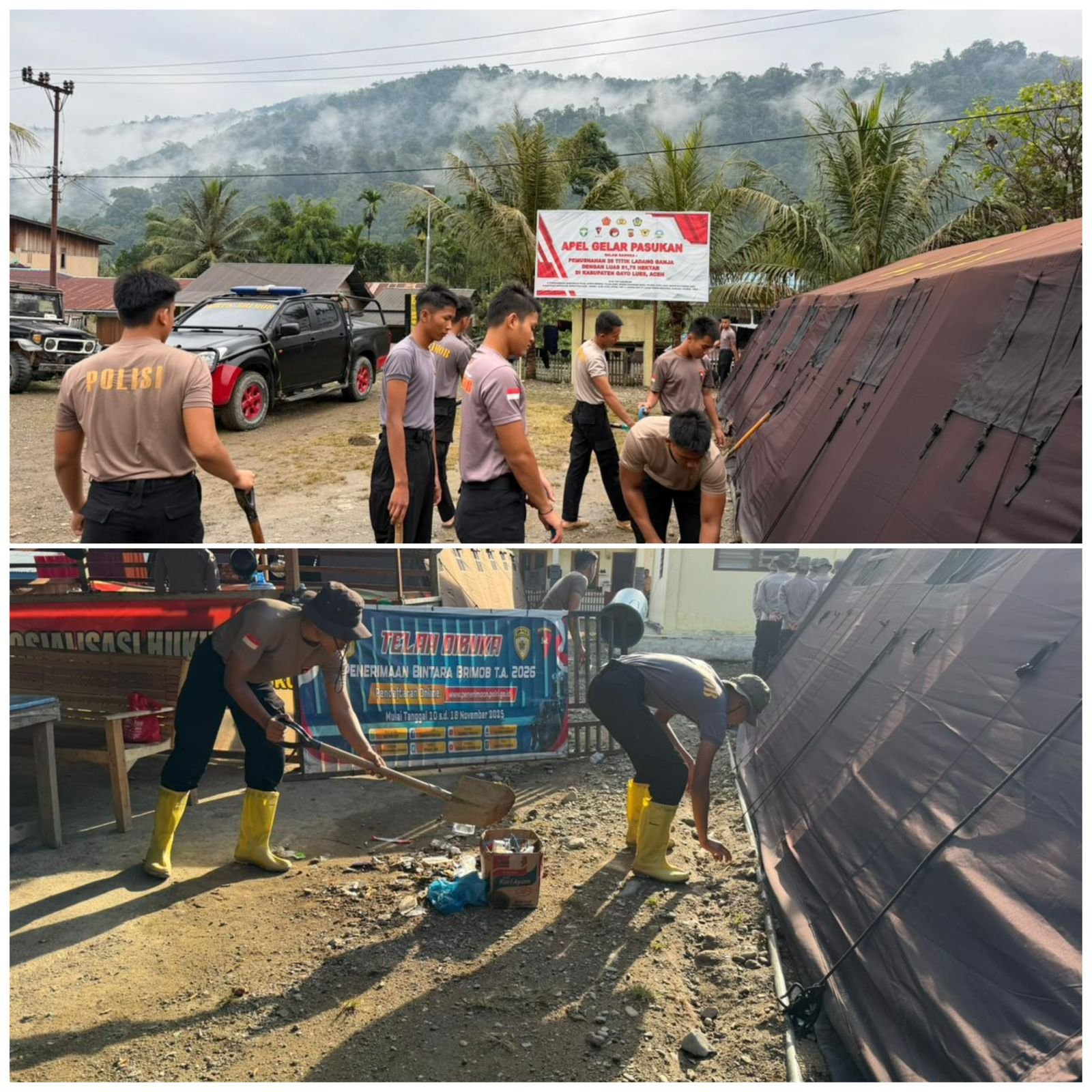 Sebanyak 84 personel Satbrimob Polda Sumsel yang dipimpin oleh AKP Eko Sarwono melaksanakan berbagai agenda sosial, mulai dari pembersihan fasilitas umum hingga pembangunan infrastruktur dasar. Kegiatan ini merupakan tindak lanjut dari Surat Perintah Kapolri terkait penugasan personel BKO untuk penanganan pasca bencana di wilayah Sumatera Bagian Utara.